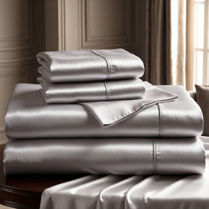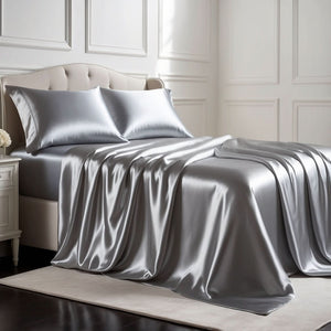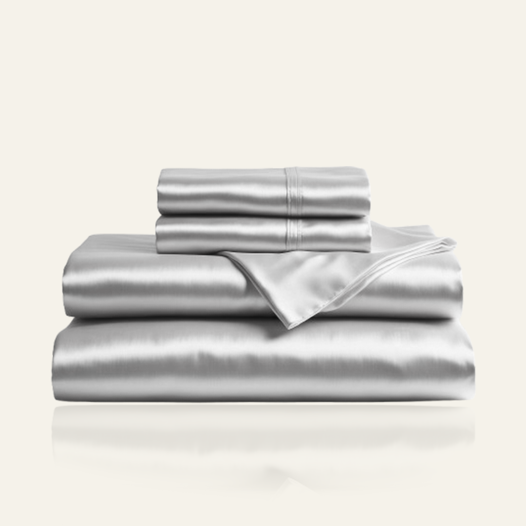 KIT SETA 4 PEZZI | LETTO ARGENTO DI LUSSO IN SETA EGIZIA